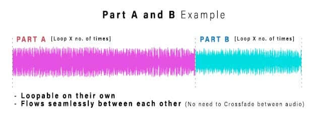 Part A/B/C = Form your own music structure with these parts. Loop each section as many times as you want before moving on to the next section!